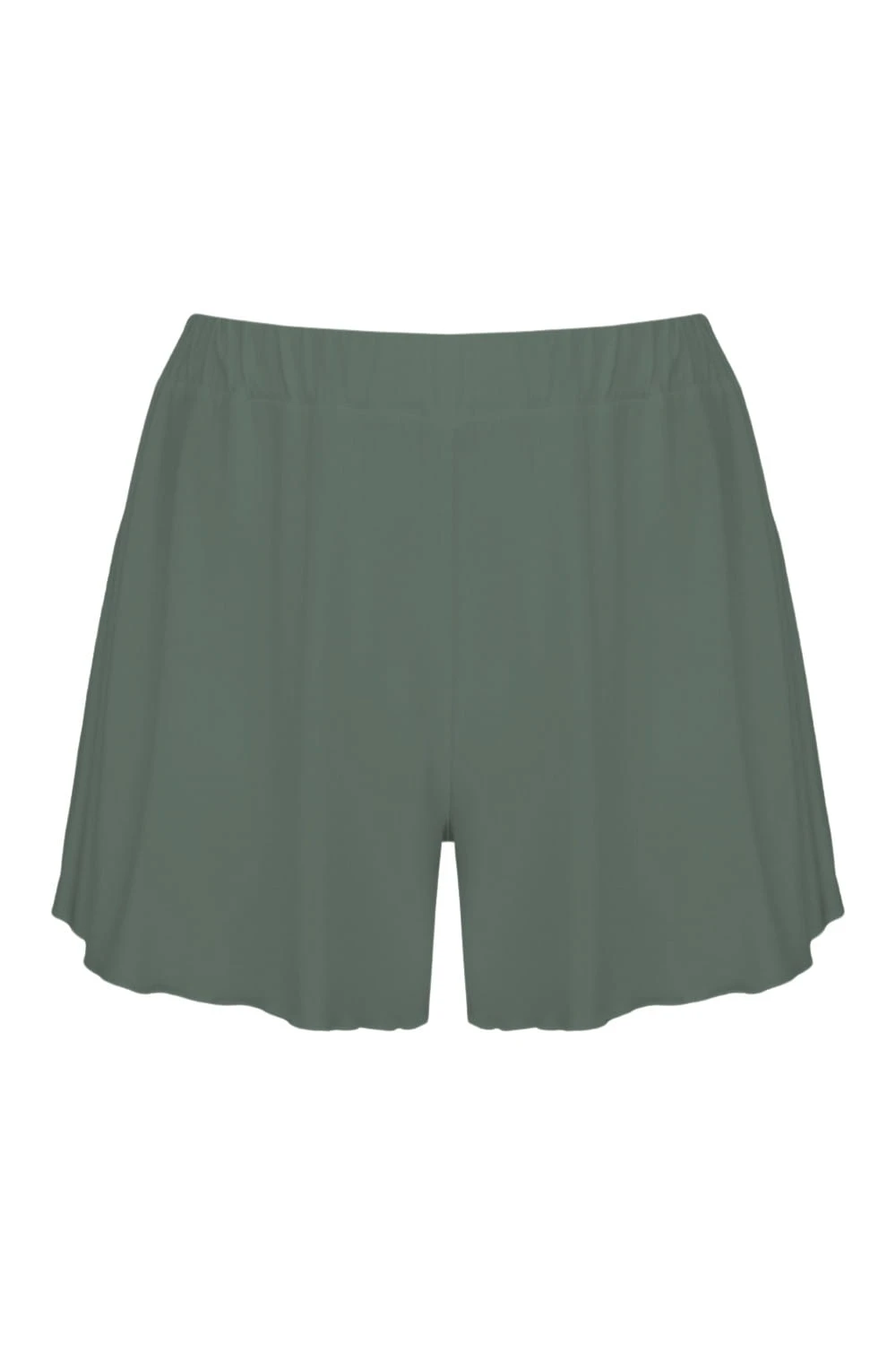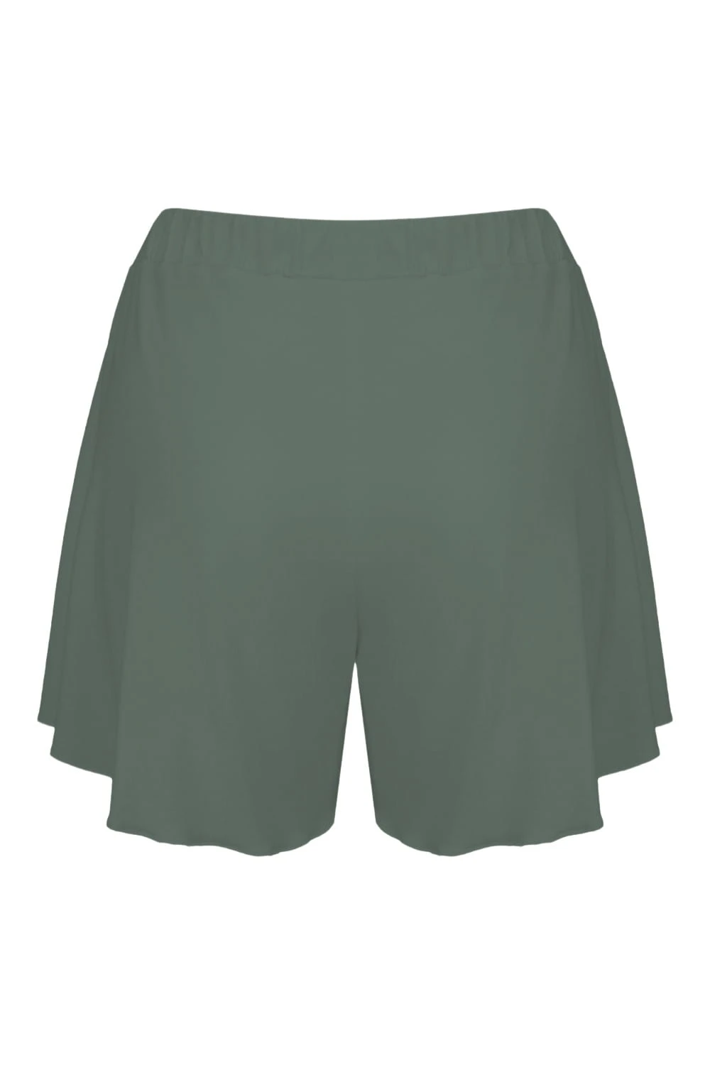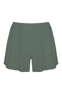 FAIRY - Balsam Green - wiskozowe zwiewne dzianinowe spodenki z falbankowymi nogawkami i paskiem z wygodną gumką