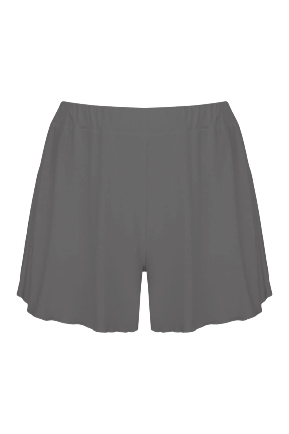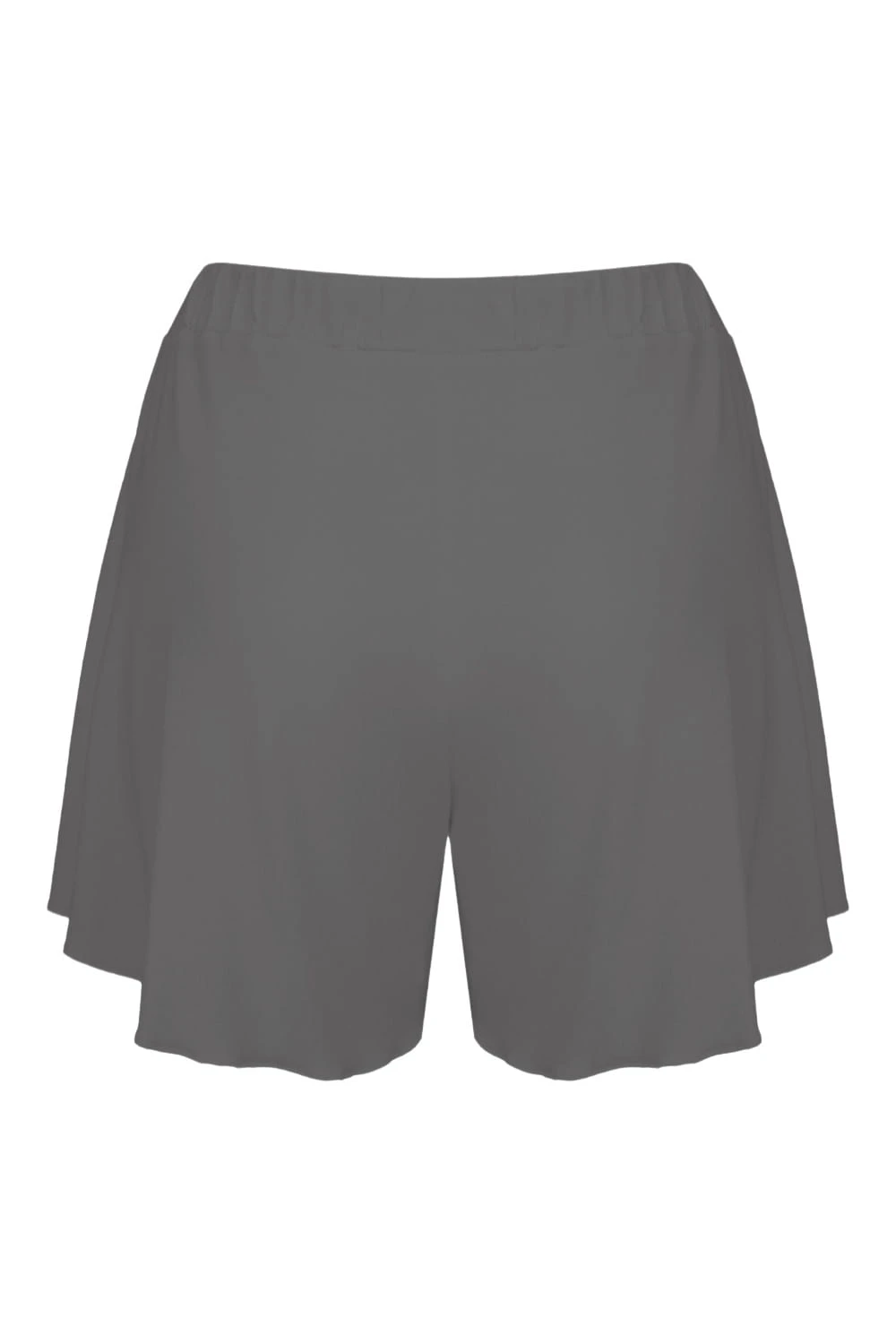 FAIRY - Charcoal Gray - wiskozowe zwiewne dzianinowe spodenki z falbankowymi nogawkami i paskiem z wygodną gumką