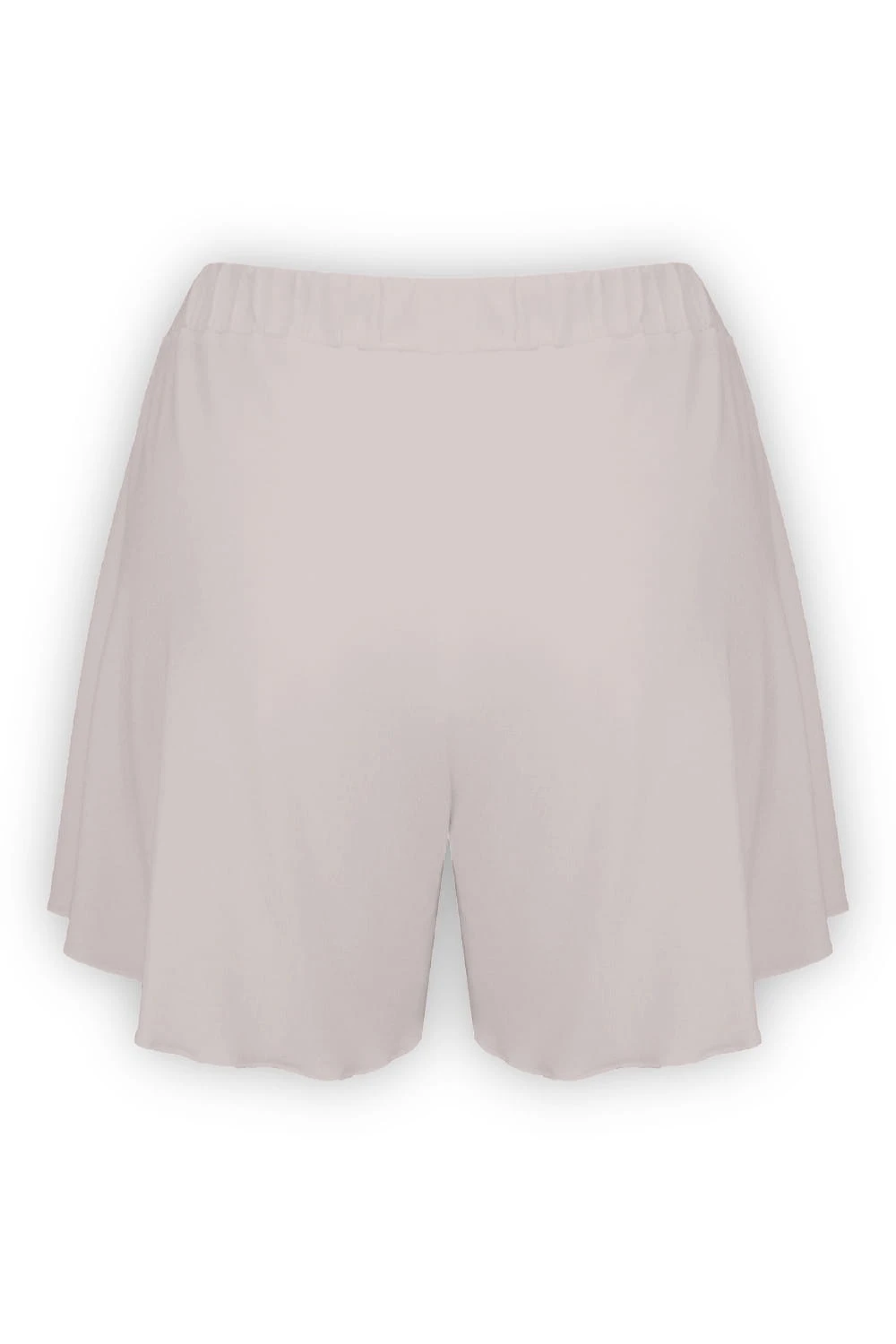 FAIRY - Gray Morn - bawełniane zwiewne dzianinowe spodenki z falbankowymi nogawkami i paskiem z wygodną gumką