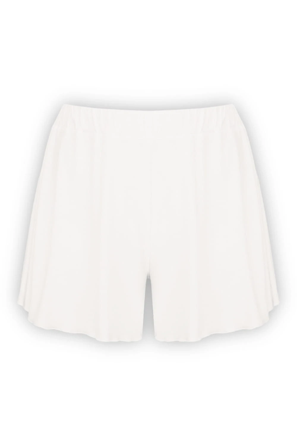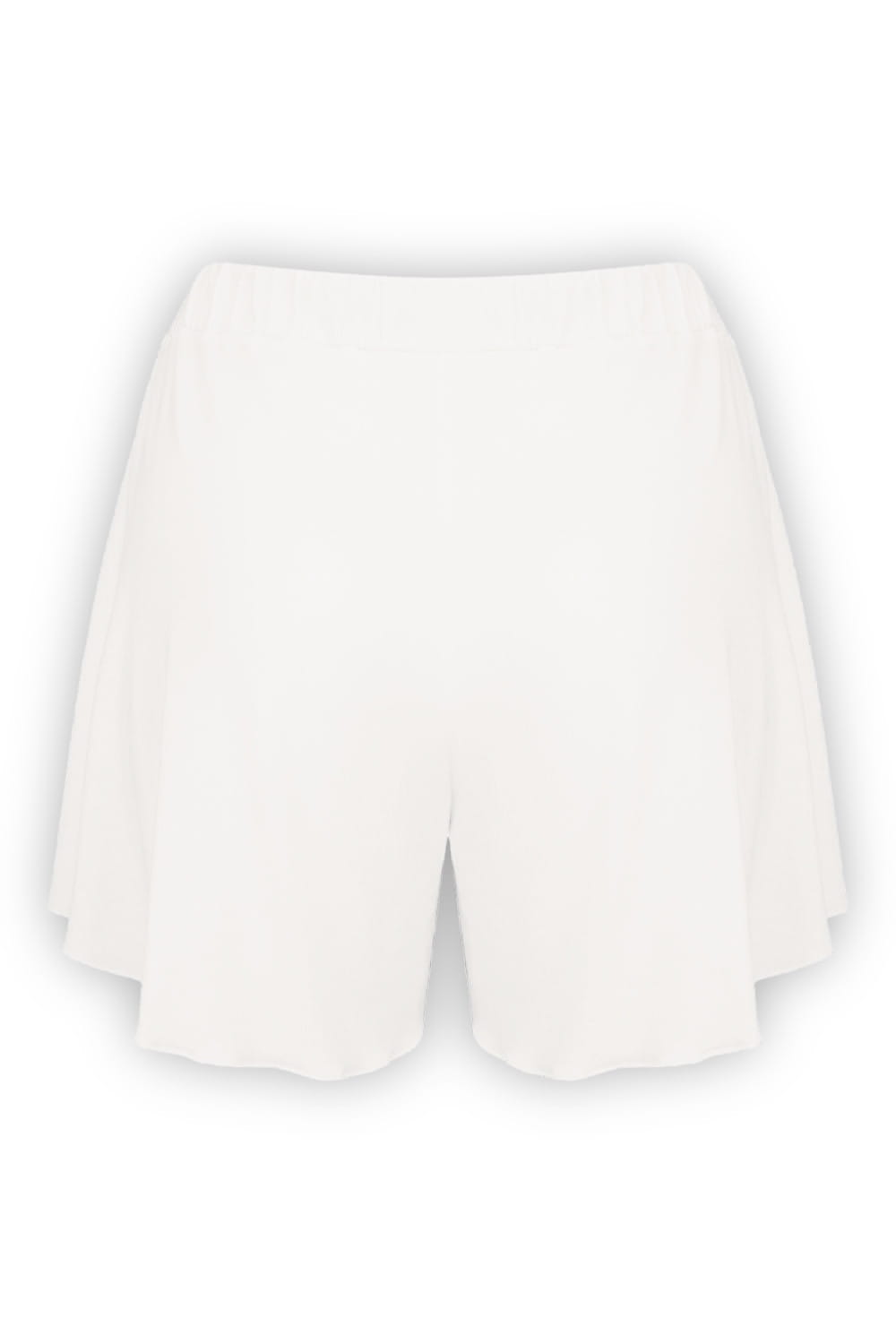 FAIRY - Star White - wiskozowe zwiewne dzianinowe spodenki z falbankowymi nogawkami i paskiem z wygodną gumką