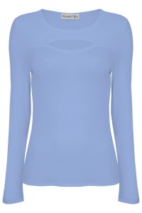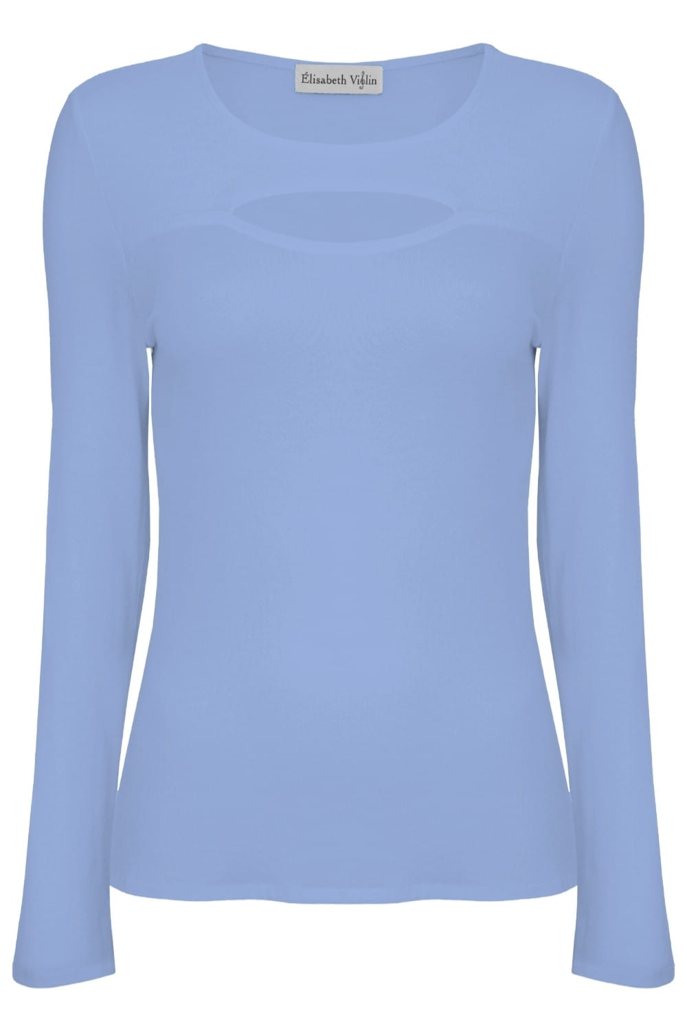FARI - Allure - bawełniana taliowana bluzka z okrągłym dekoltem z wycięciem z klasycznymi długimi rękawami