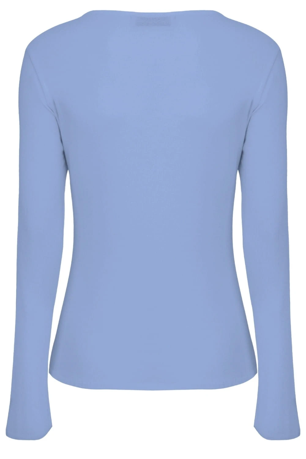 Dzianinowa bluzka z długim rękawem i subtelnym wycięciem na dekolcie.