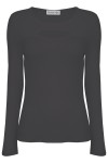 FARI - Asphalt - bawełniana taliowana bluzka z okrągłym dekoltem z wycięciem z klasycznymi długimi rękawami