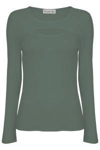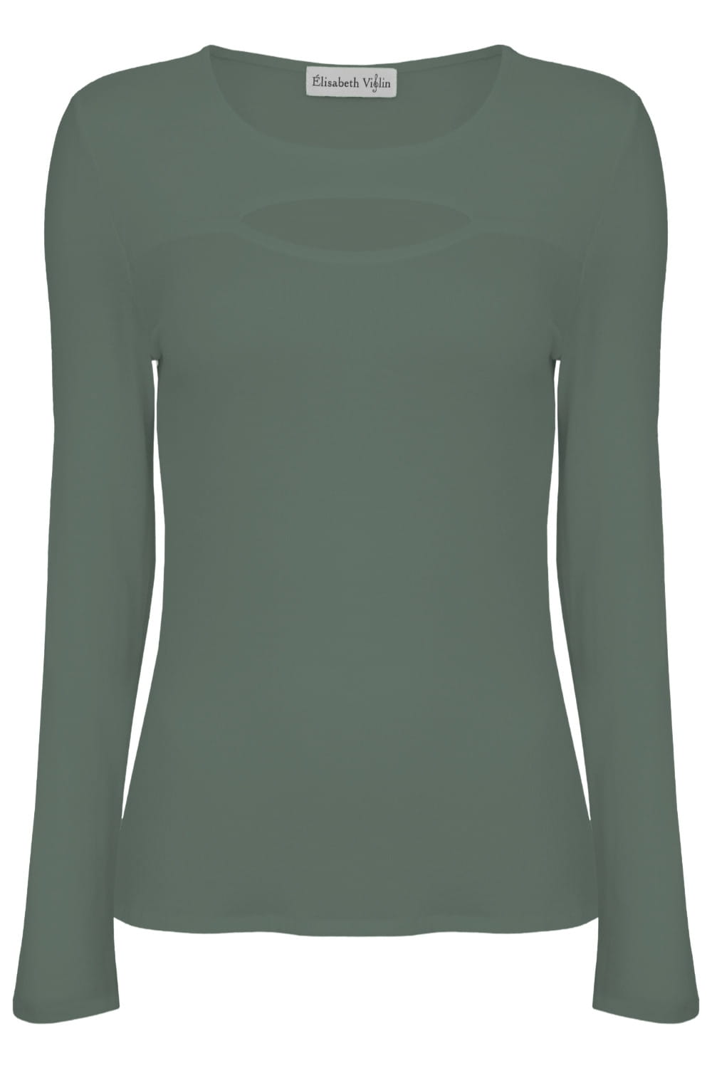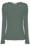 FARI - Balsam Green - wiskozowa taliowana bluzka z okrągłym dekoltem z wycięciem z klasycznymi długimi rękawami