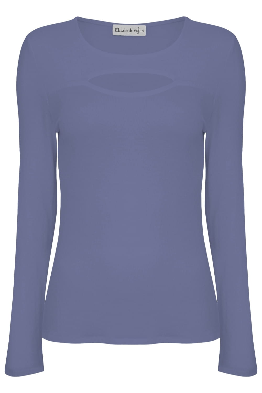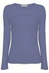 FARI - Bering Sea - wiskozowa taliowana bluzka z okrągłym dekoltem z wycięciem z klasycznymi długimi rękawami