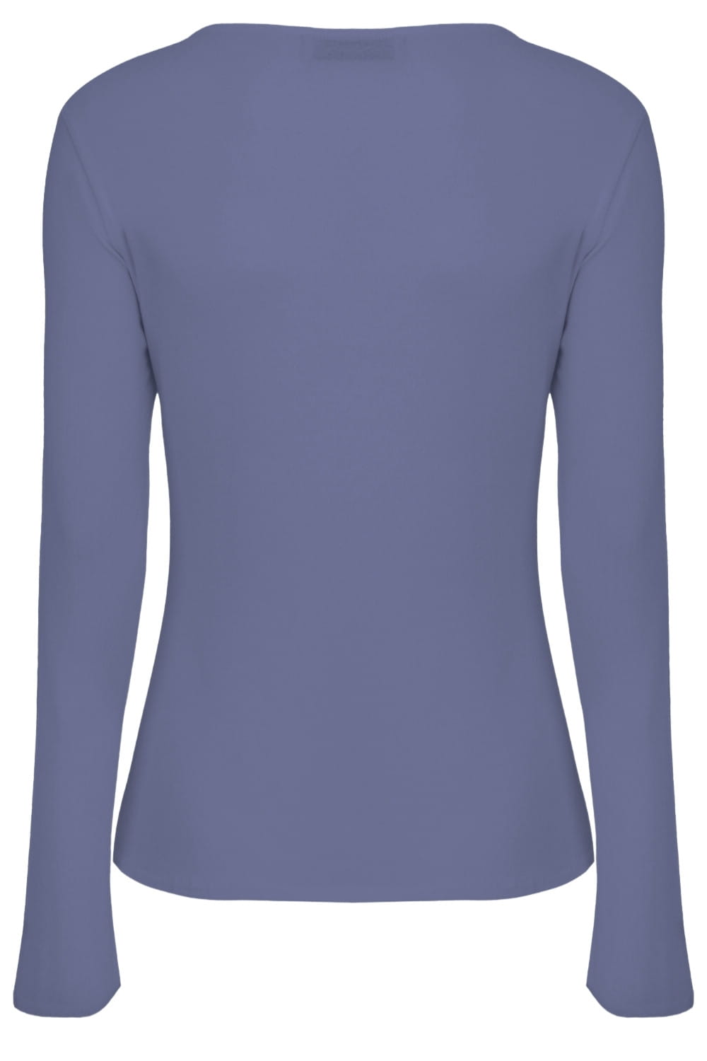 Dzianinowa bluzka z długim rękawem i subtelnym wycięciem na dekolcie.