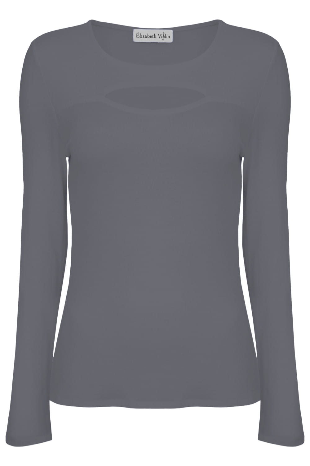 FARI - Castlerock - wiskozowa taliowana bluzka z okrągłym dekoltem z wycięciem z klasycznymi długimi rękawami