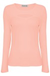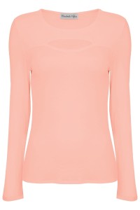 FARI - Coral Cloud - bawełniana taliowana bluzka z okrągłym dekoltem z wycięciem z klasycznymi długimi rękawami