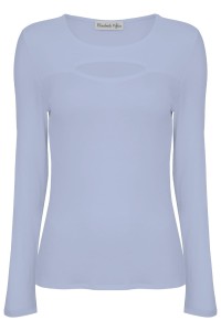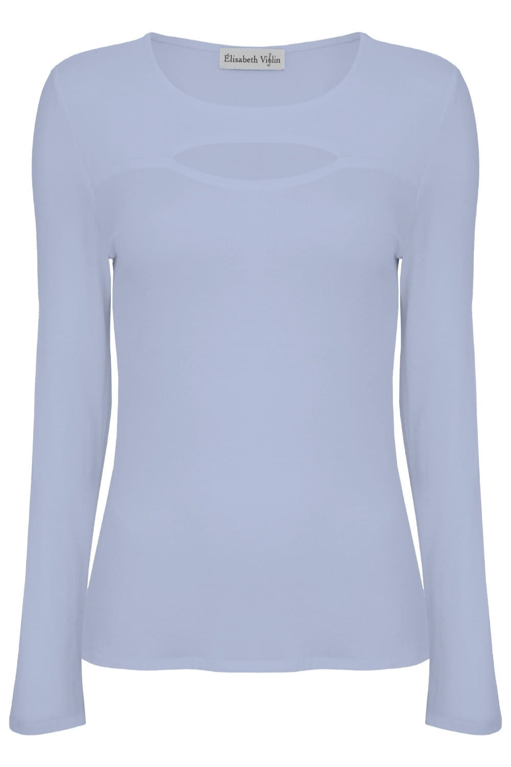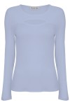 FARI - Faded Denim - wiskozowa taliowana bluzka z okrągłym dekoltem z wycięciem z klasycznymi długimi rękawami