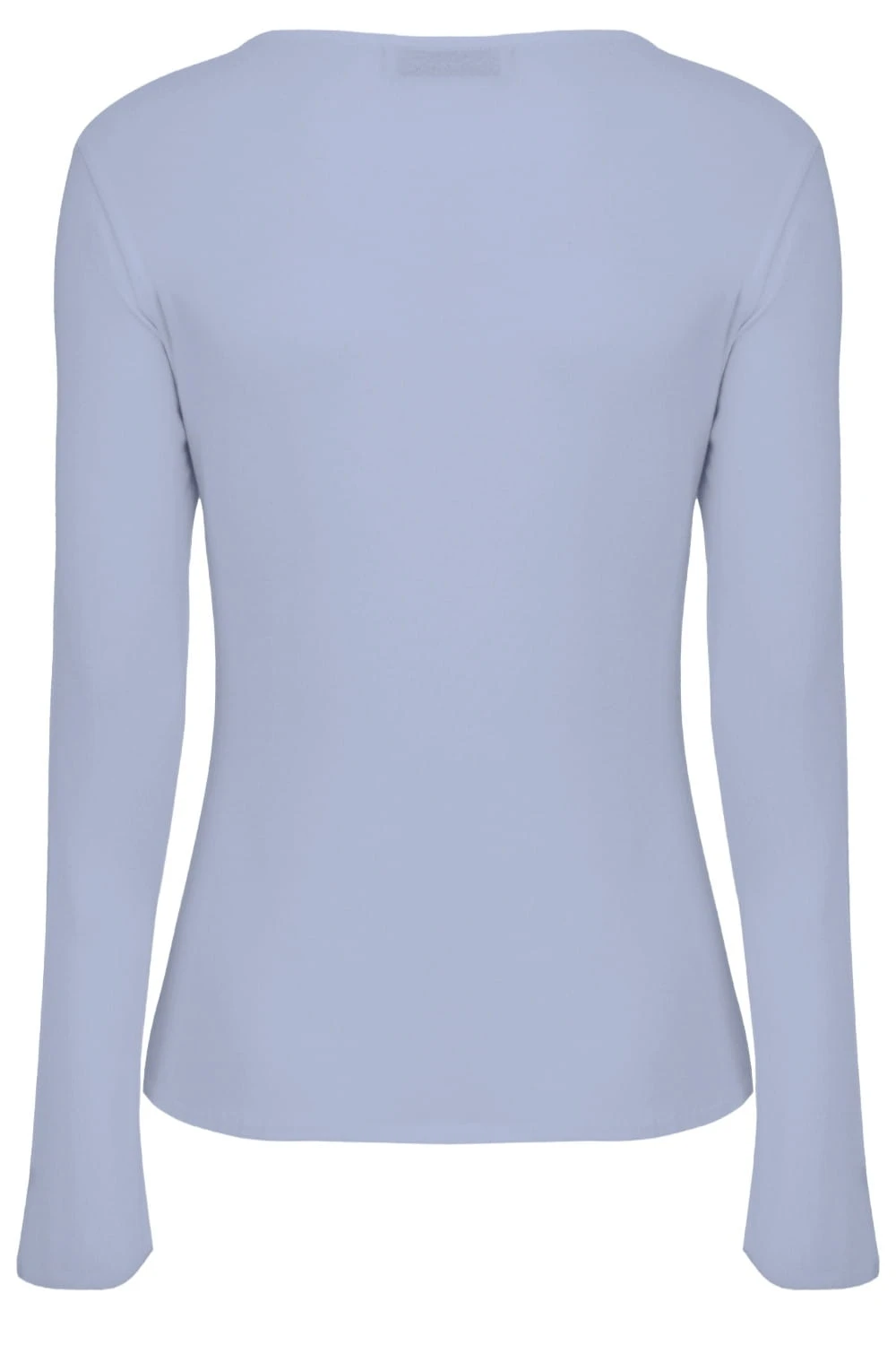 Dzianinowa bluzka z długim rękawem i subtelnym wycięciem na dekolcie.