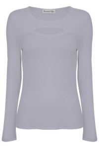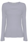FARI - Sleet - wiskozowa taliowana bluzka z okrągłym dekoltem z wycięciem z klasycznymi długimi rękawami