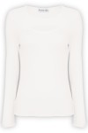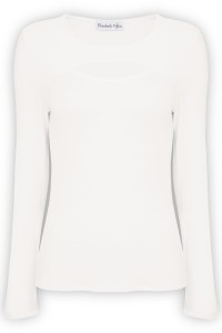 FARI - Star White - wiskozowa taliowana bluzka z okrągłym dekoltem z wycięciem z klasycznymi długimi rękawami