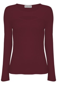 FARI - Zinfandel - bawełniana taliowana bluzka z okrągłym dekoltem z wycięciem z klasycznymi długimi rękawami