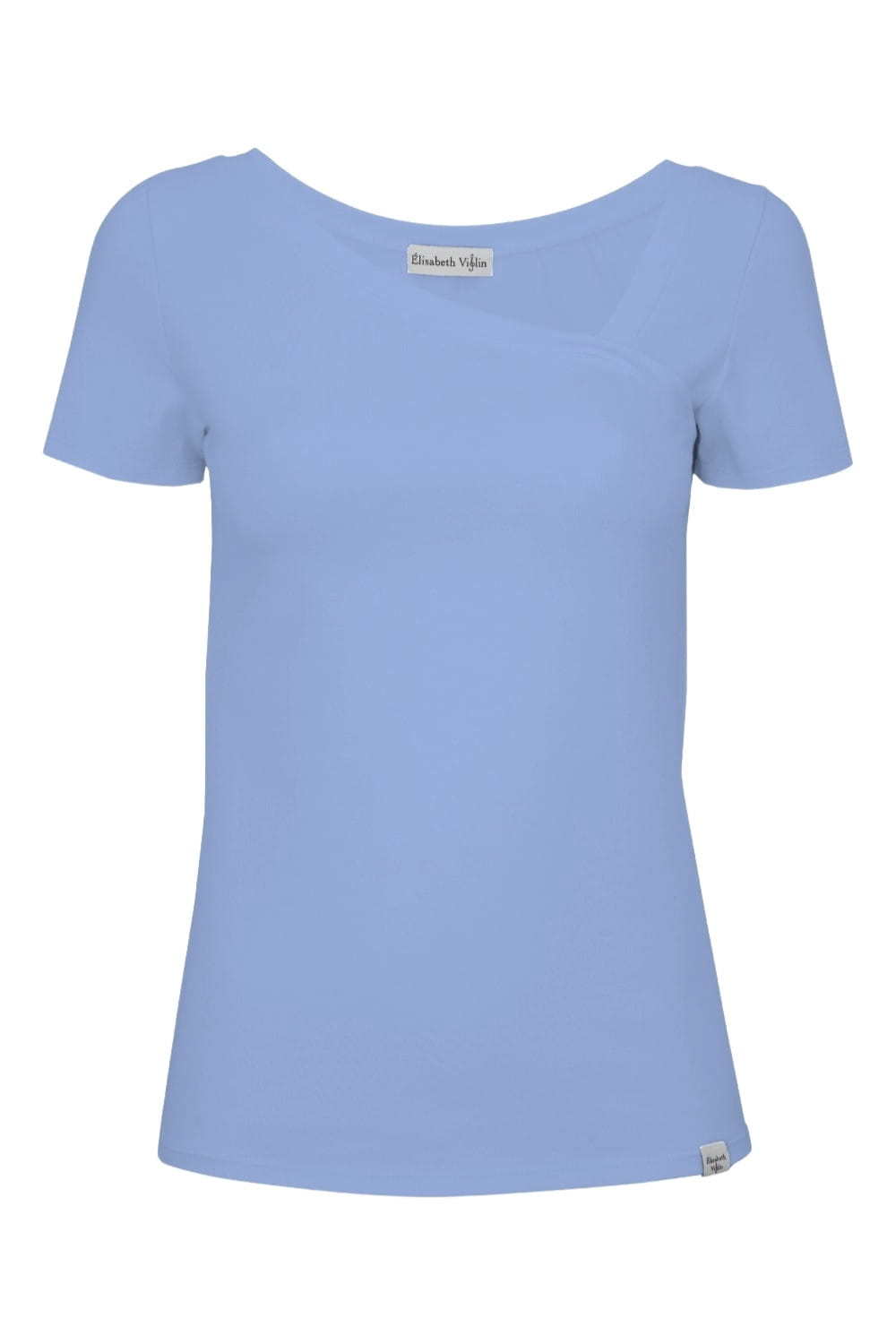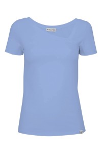 FLORA - Allure - bawełniana taliowana bluzka z asymetrycznym dekoltem i klasycznymi krótkimi rękawami