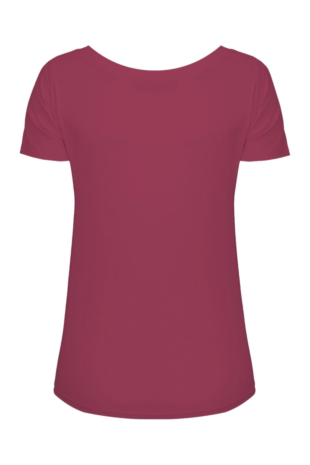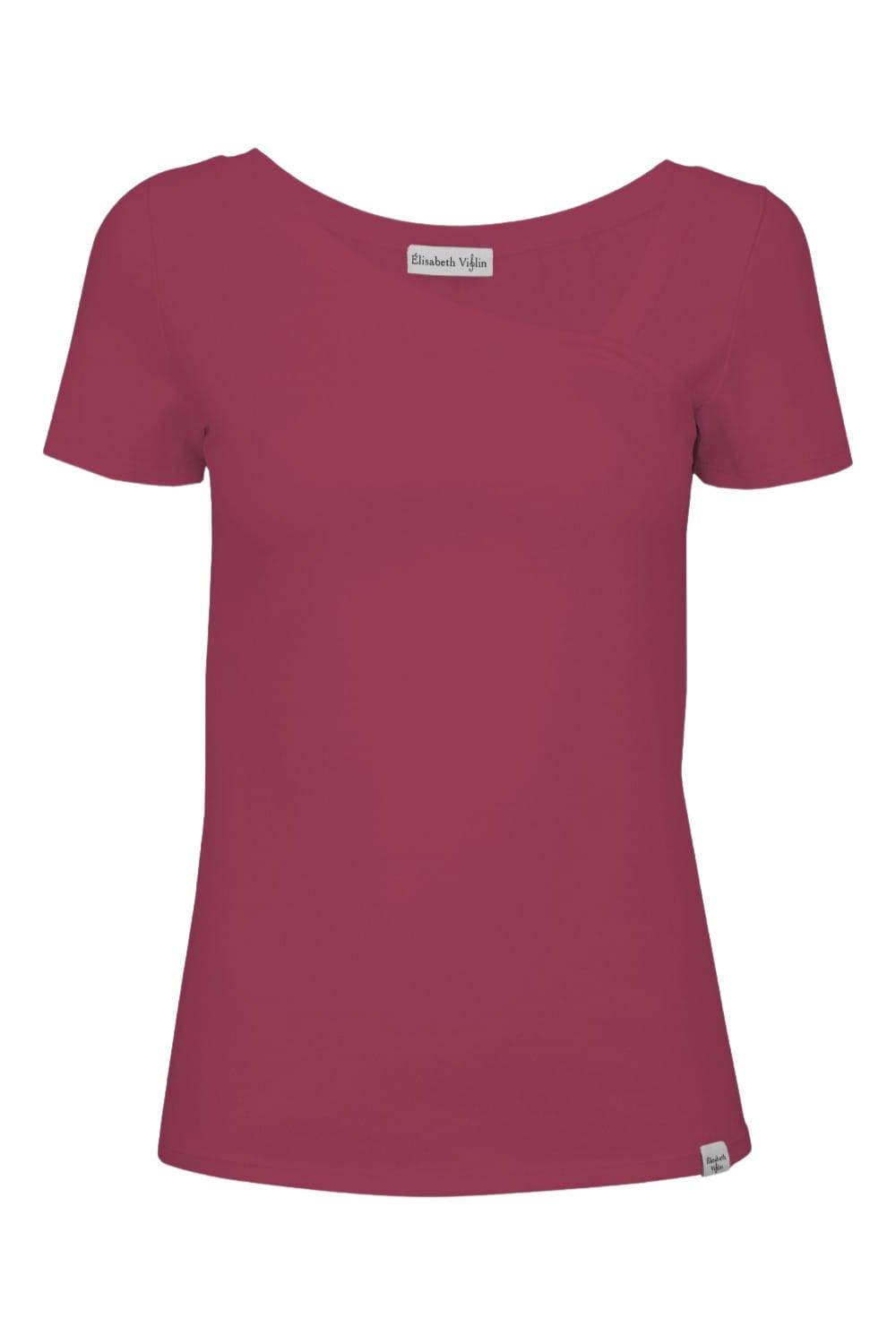 FLORA - Beaujolais - bawełniana taliowana bluzka z asymetrycznym dekoltem i klasycznymi krótkimi rękawami