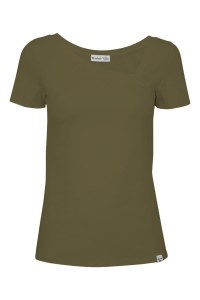 FLORA - Beech - bambusowa taliowana bluzka z asymetrycznym dekoltem i klasycznymi krótkimi rękawami