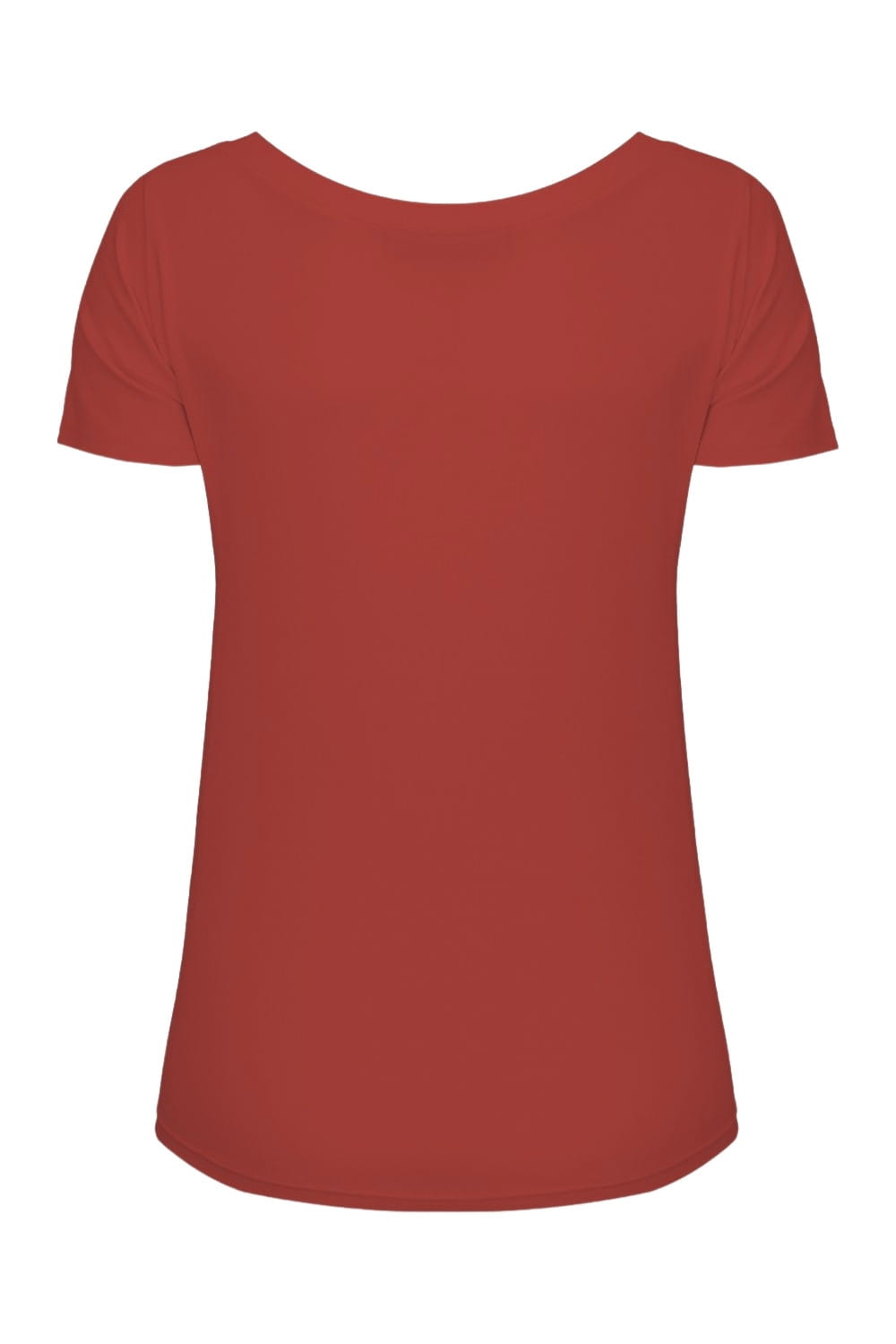 FLORA - Brick Red - bawełniana taliowana bluzka z asymetrycznym dekoltem i klasycznymi krótkimi rękawami