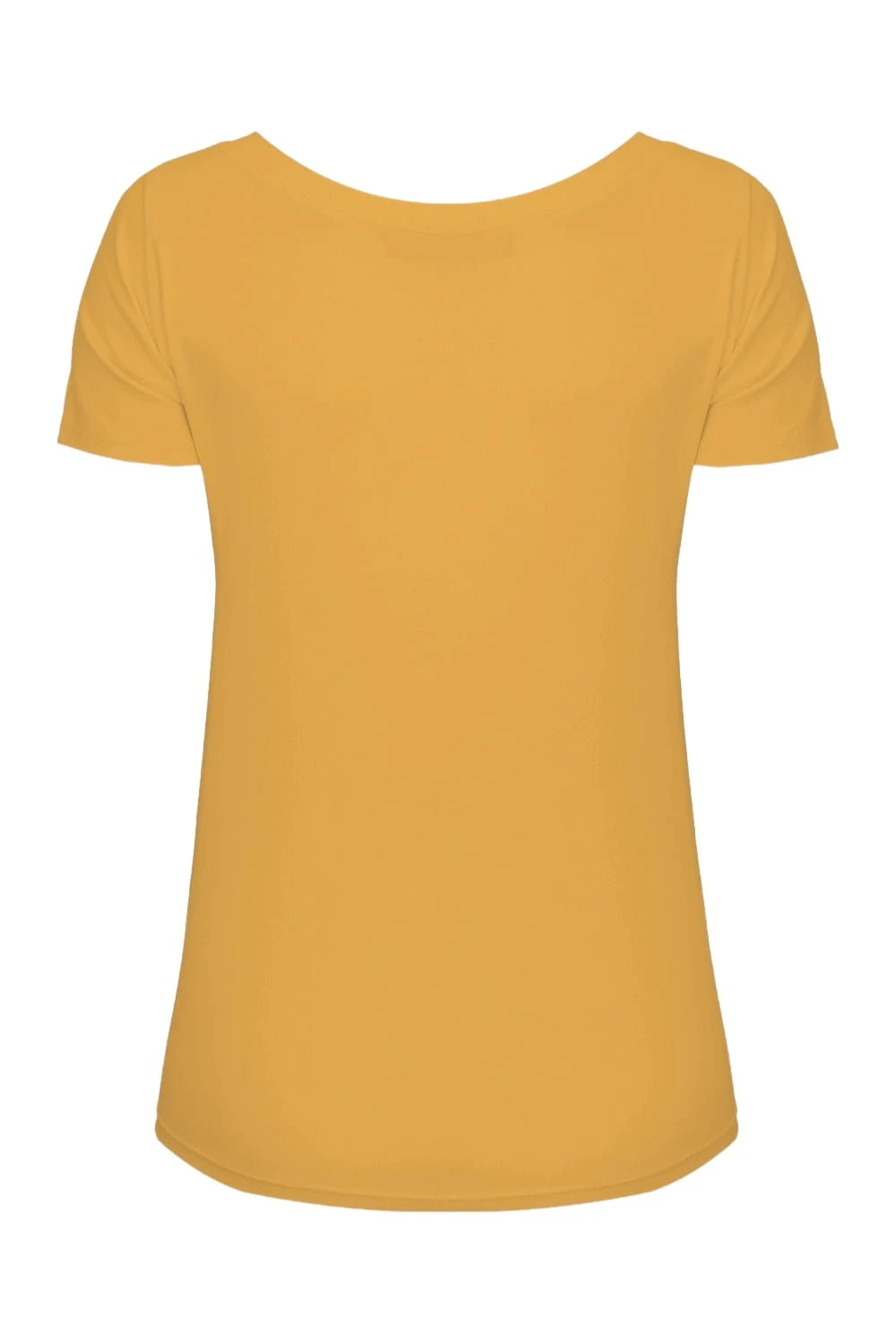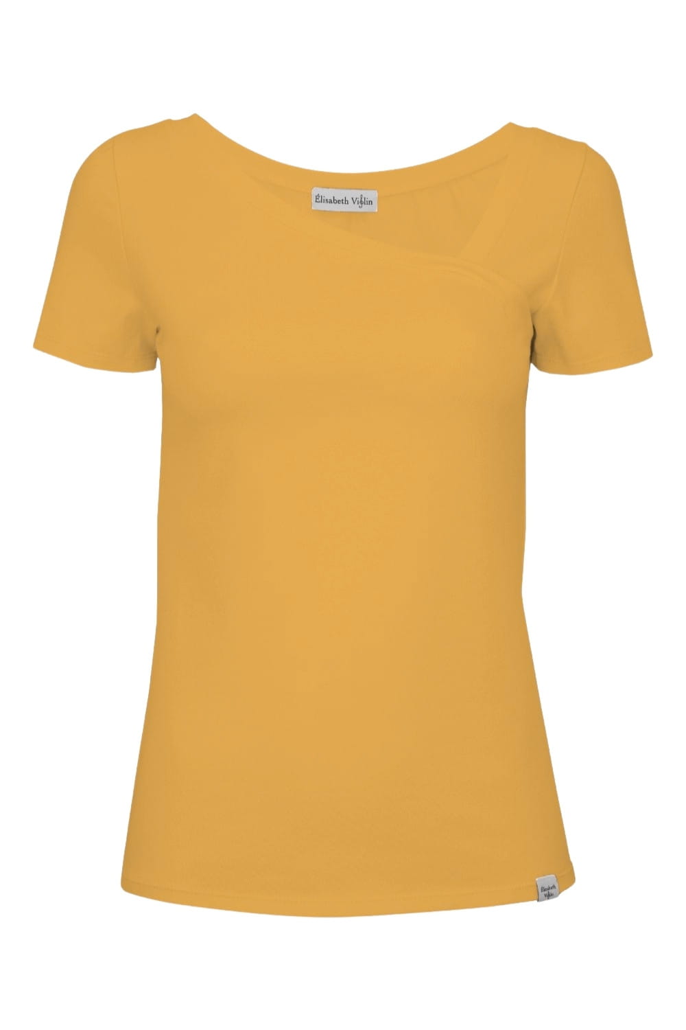 FLORA - Bright Gold - bambusowa taliowana bluzka z asymetrycznym dekoltem i klasycznymi krótkimi rękawami