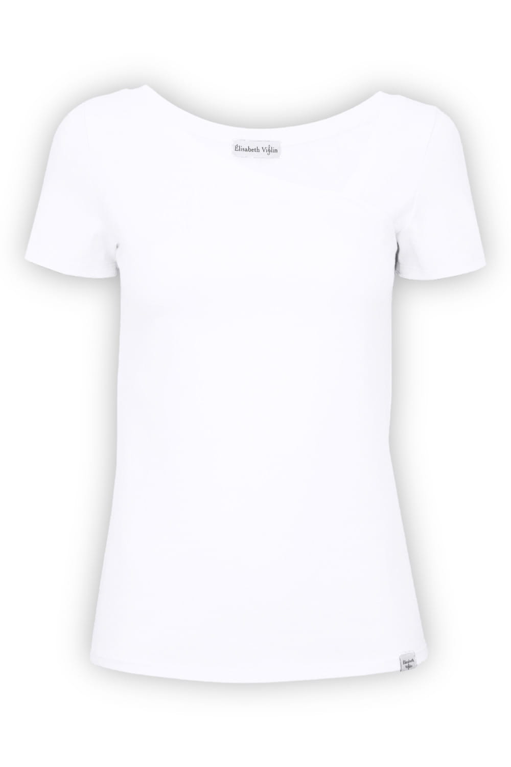 FLORA - Brilliant White - bambusowa taliowana bluzka z asymetrycznym dekoltem i klasycznymi krótkimi rękawami