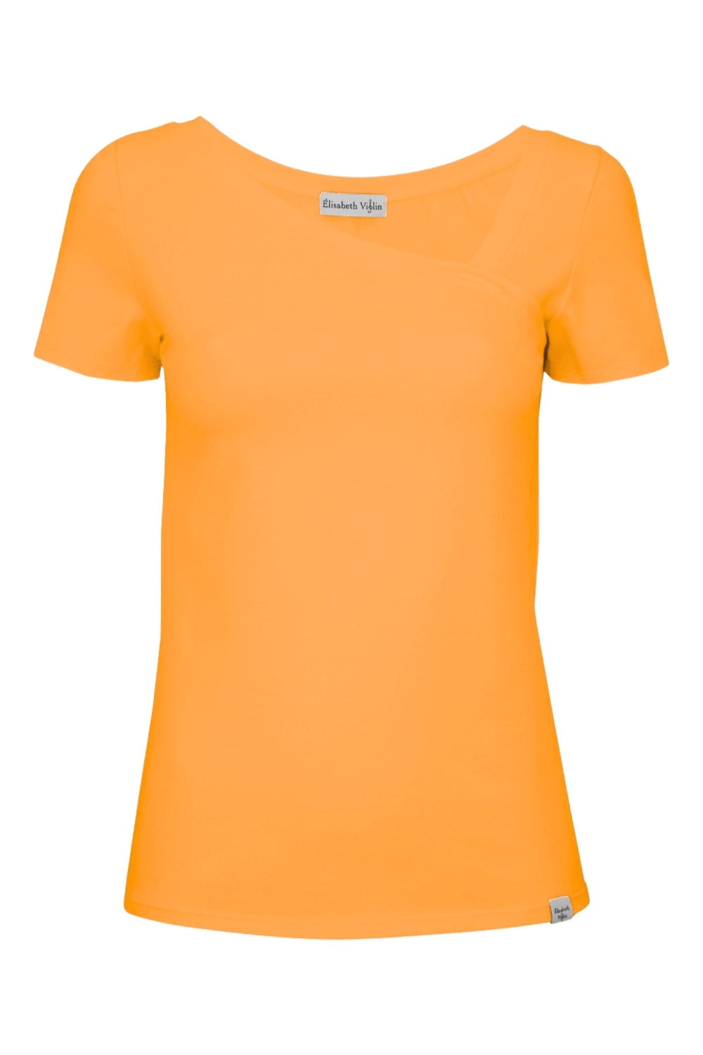 FLORA - Butterscotch - bambusowa taliowana bluzka z asymetrycznym dekoltem i klasycznymi krótkimi rękawami