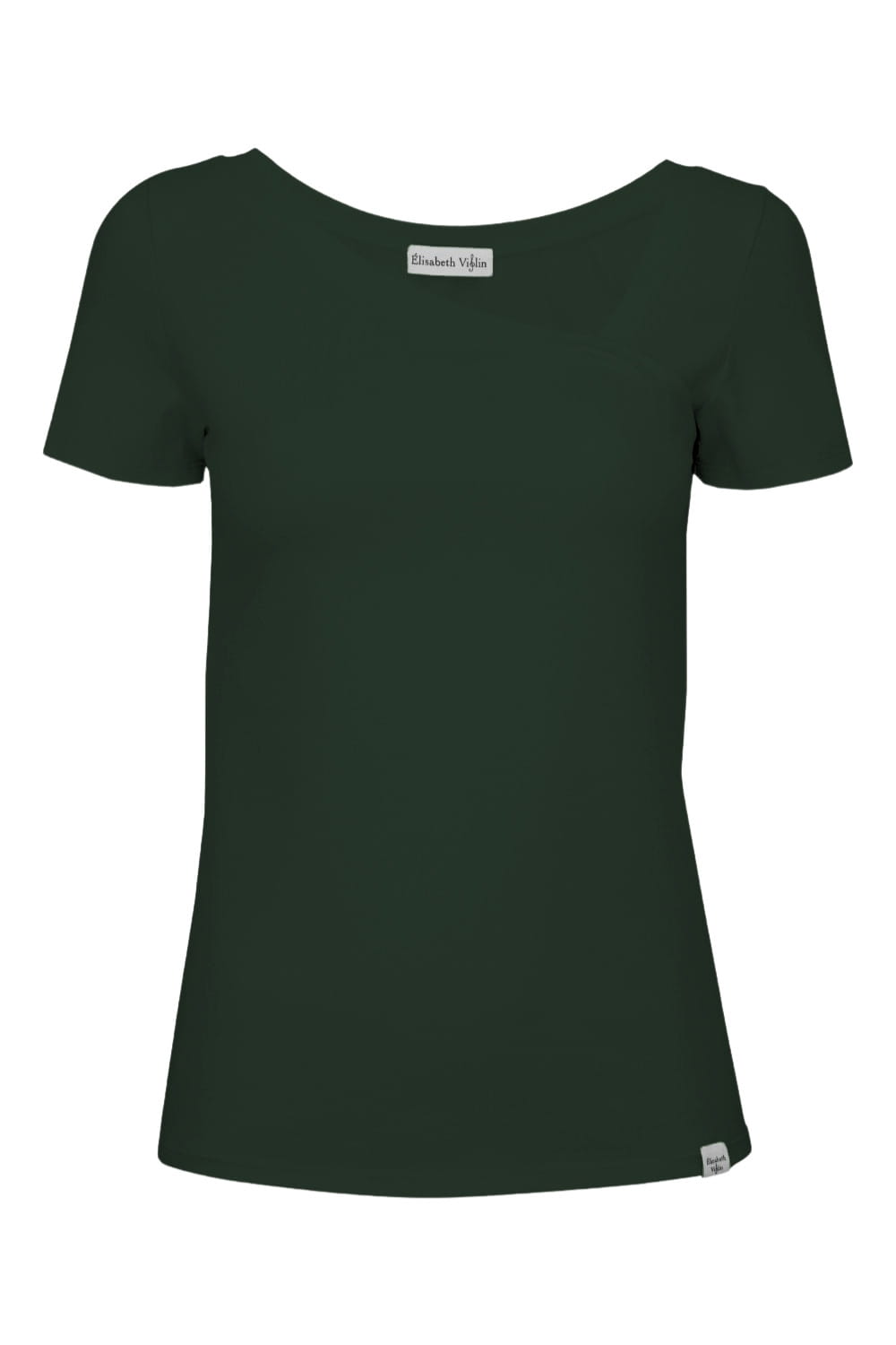FLORA - Darkest Spruce - bawełniana taliowana bluzka z asymetrycznym dekoltem i klasycznymi krótkimi rękawami