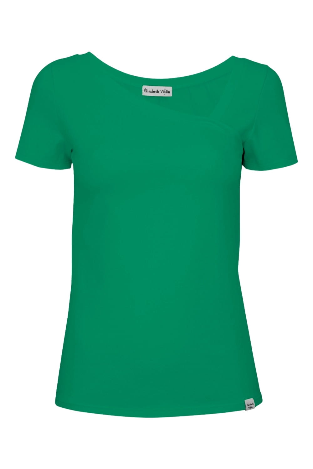 FLORA - Deep Green - bawełniana taliowana bluzka z asymetrycznym dekoltem i klasycznymi krótkimi rękawami