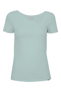 FLORA - Ether - bawełniana taliowana bluzka z asymetrycznym dekoltem i klasycznymi krótkimi rękawami