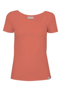 FLORA - Faded Rose - bambusowa taliowana bluzka z asymetrycznym dekoltem i klasycznymi krótkimi rękawami
