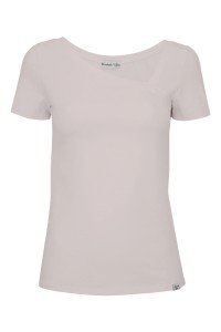 FLORA - Gray Morn - bawełniana taliowana bluzka z asymetrycznym dekoltem i klasycznymi krótkimi rękawami
