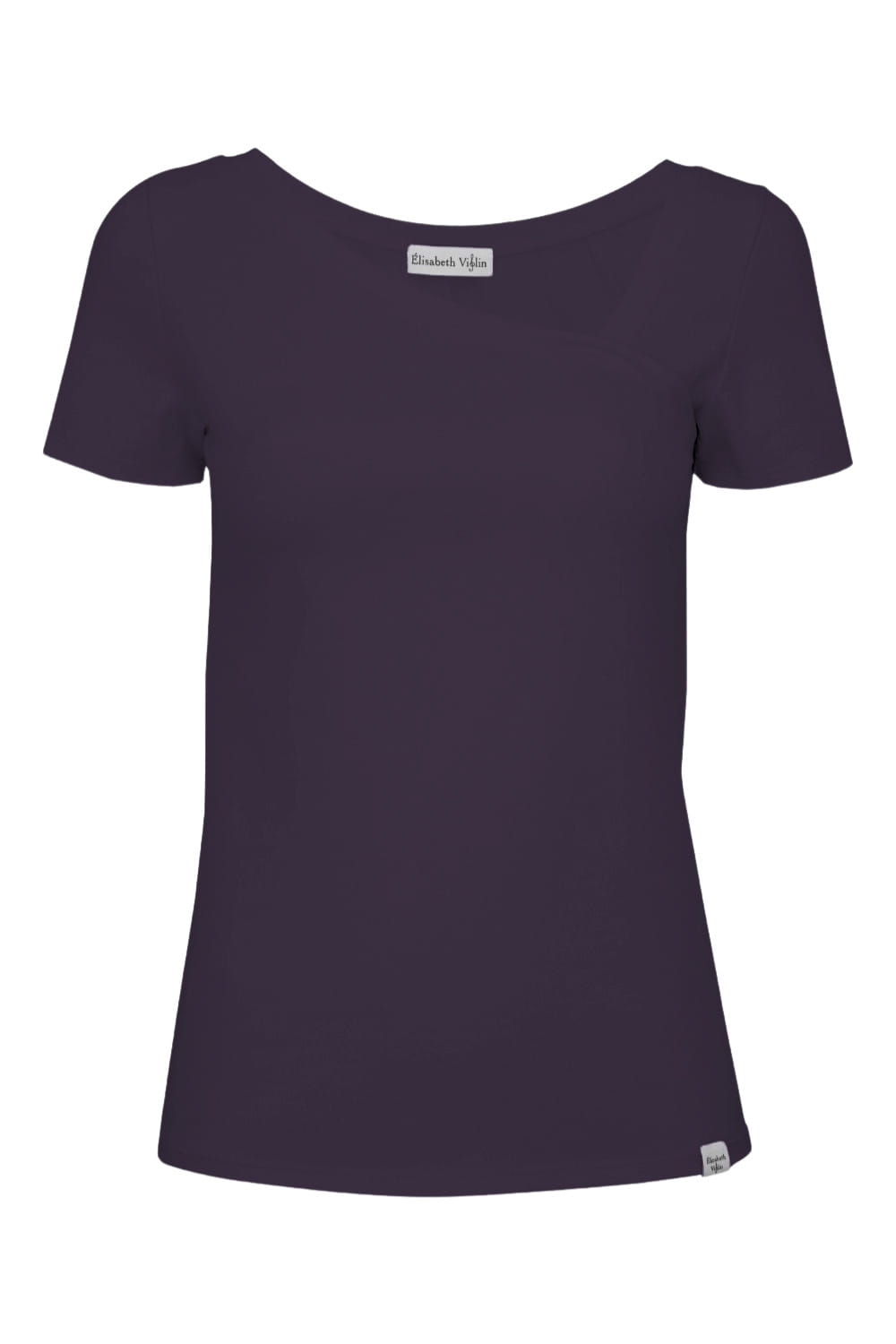 FLORA - Nightshade - bawełniana taliowana bluzka z asymetrycznym dekoltem i klasycznymi krótkimi rękawami