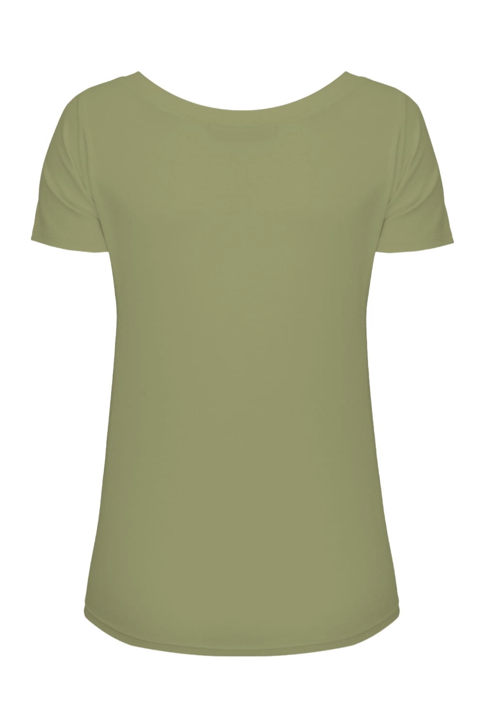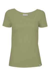 FLORA - Oil Green - bambusowa taliowana bluzka z asymetrycznym dekoltem i klasycznymi krótkimi rękawami