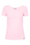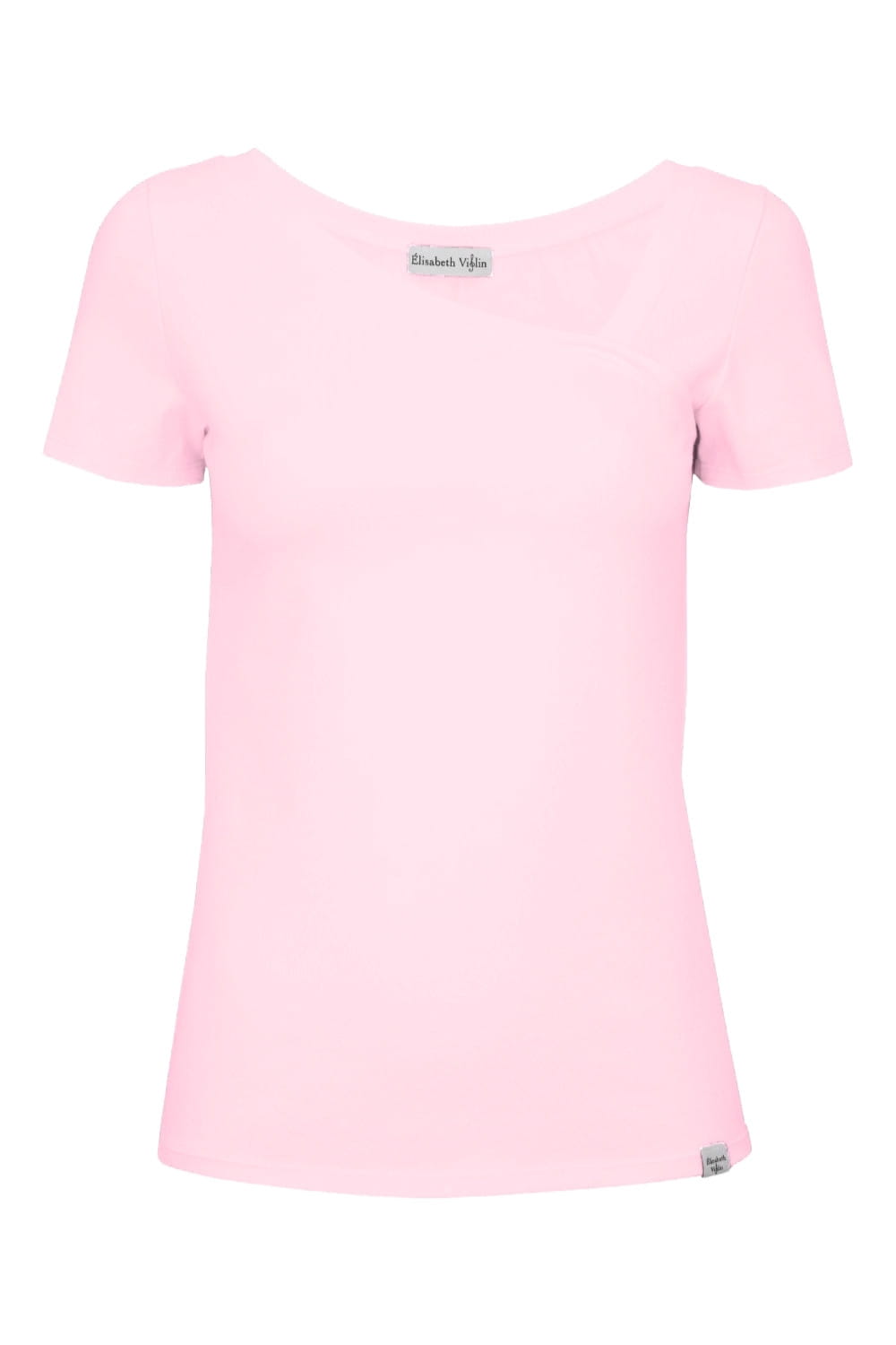 FLORA - Parfait Pink - bawełniana taliowana bluzka z asymetrycznym dekoltem i klasycznymi krótkimi rękawami
