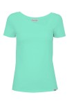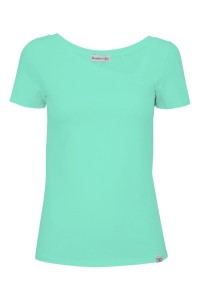 FLORA - Pool Blue - bawełniana taliowana bluzka z asymetrycznym dekoltem i klasycznymi krótkimi rękawami