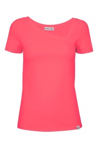 FLORA - Rouge Red - wiskozowa taliowana bluzka z asymetrycznym dekoltem i klasycznymi krótkimi rękawami