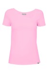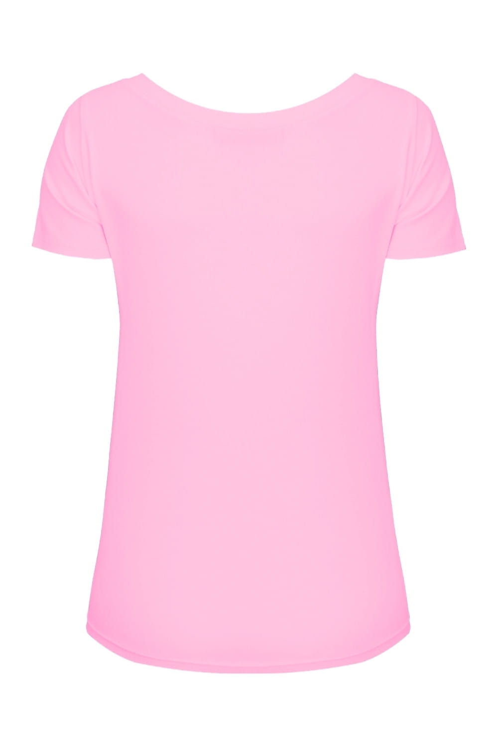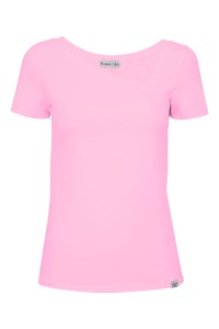 FLORA - Sea Pink - wiskozowa taliowana bluzka z asymetrycznym dekoltem i klasycznymi krótkimi rękawami