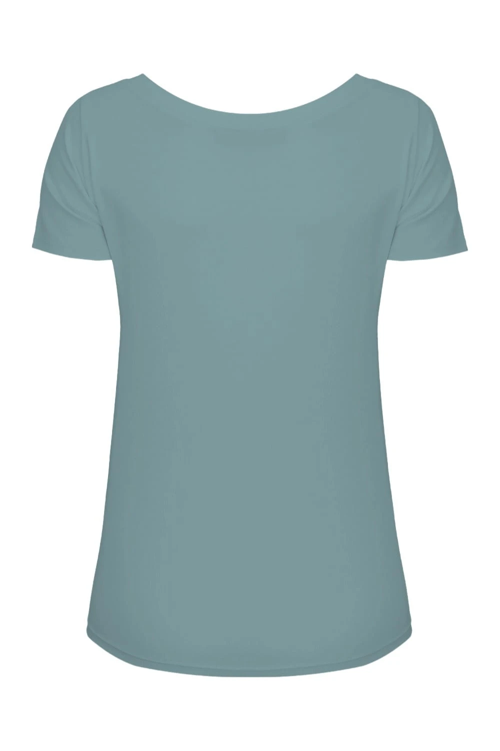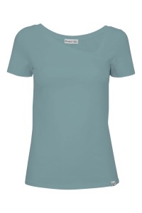 FLORA - Smoke Blue - bawełniana taliowana bluzka z asymetrycznym dekoltem i klasycznymi krótkimi rękawami