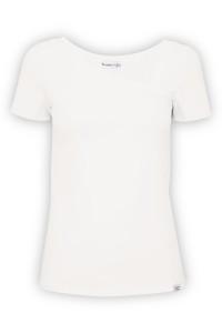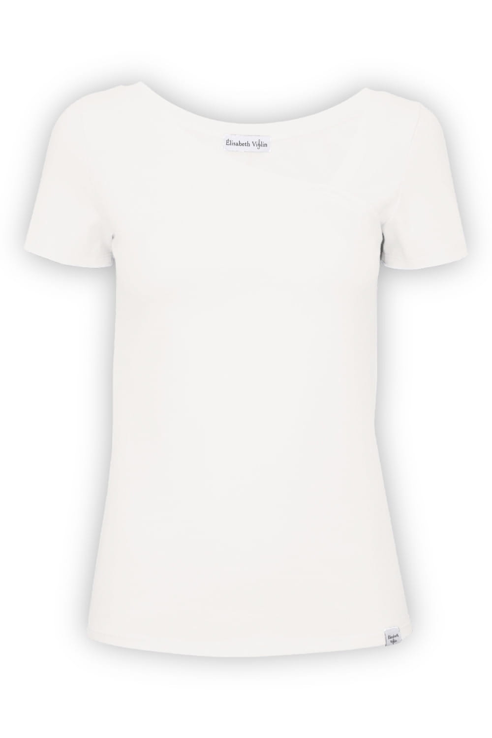 FLORA - Star White - bawełniana taliowana bluzka z asymetrycznym dekoltem i klasycznymi krótkimi rękawami