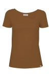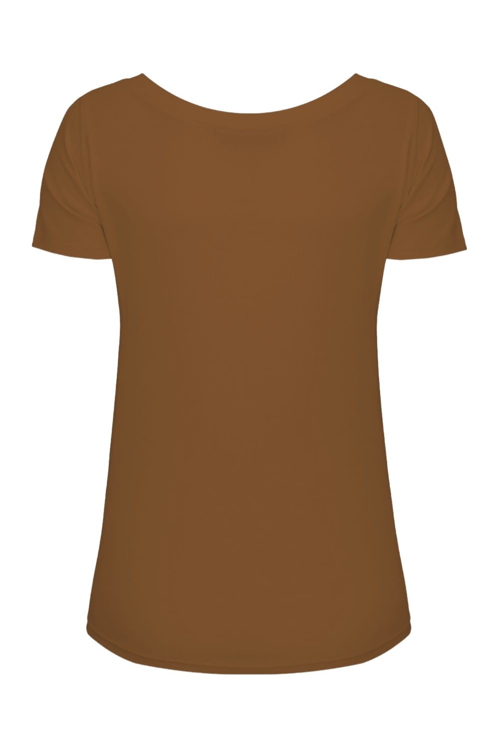 FLORA - Toffee - bambusowa taliowana bluzka z asymetrycznym dekoltem i klasycznymi krótkimi rękawami