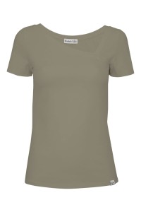 FLORA - Vetiver - bambusowa taliowana bluzka z asymetrycznym dekoltem i klasycznymi krótkimi rękawami