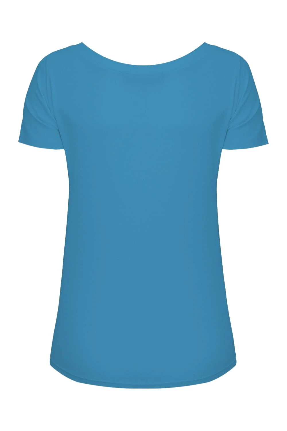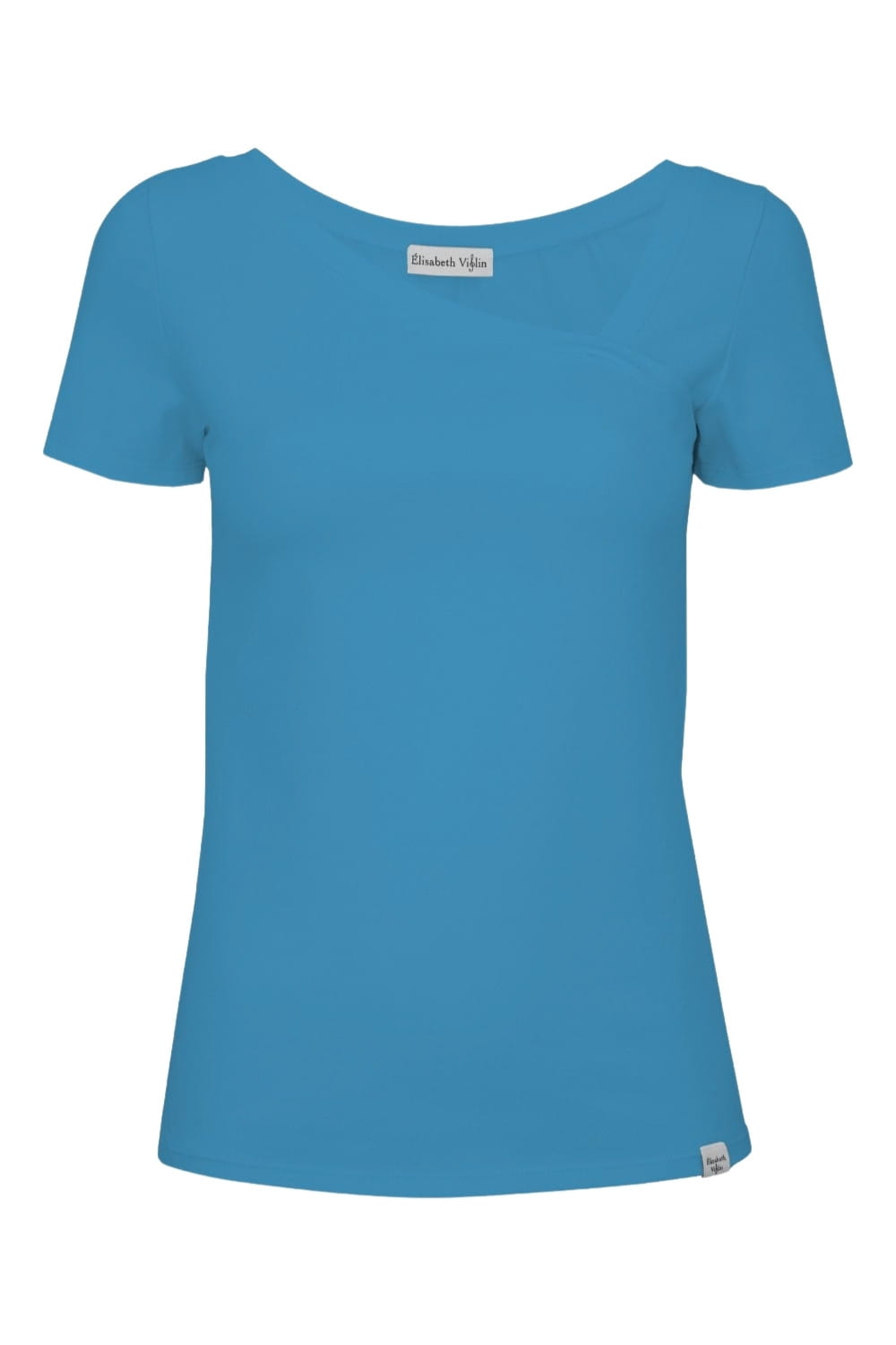 FLORA - Vivid Blue - bawełniana taliowana bluzka z asymetrycznym dekoltem i klasycznymi krótkimi rękawami