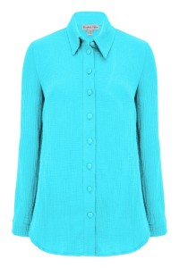 HALLIE - Bachelor Button - muślinowa koszula oversized z kołnierzykiem i długimi rękawami