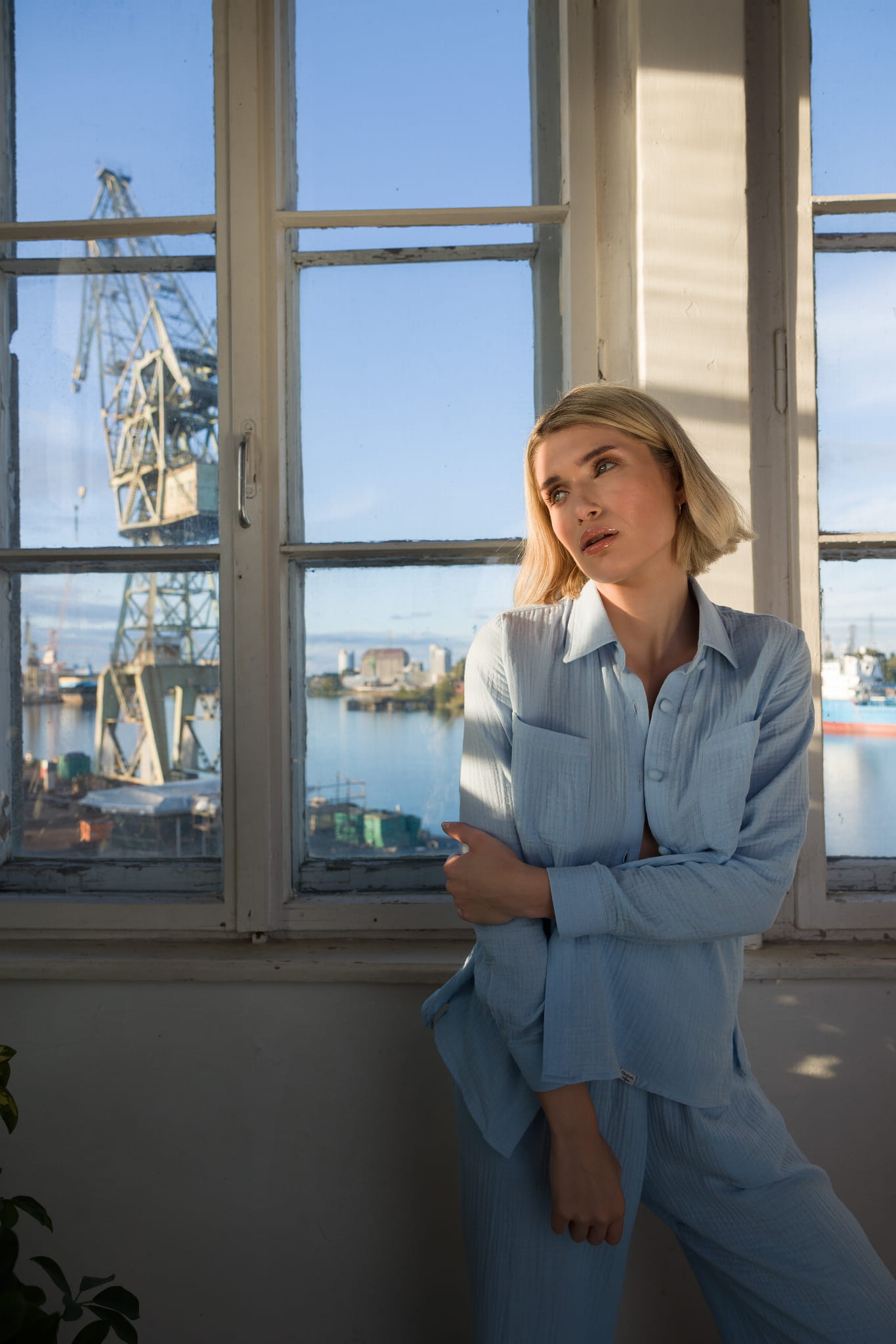 Koszula Hallie została uszyta z wyjątkowo miękkiego, oddychającego muślinu bawełnianego – tkaniny o lekko marszczonej strukturze, która nie tylko wygląda pięknie, ale też zachwyca w dotyku.