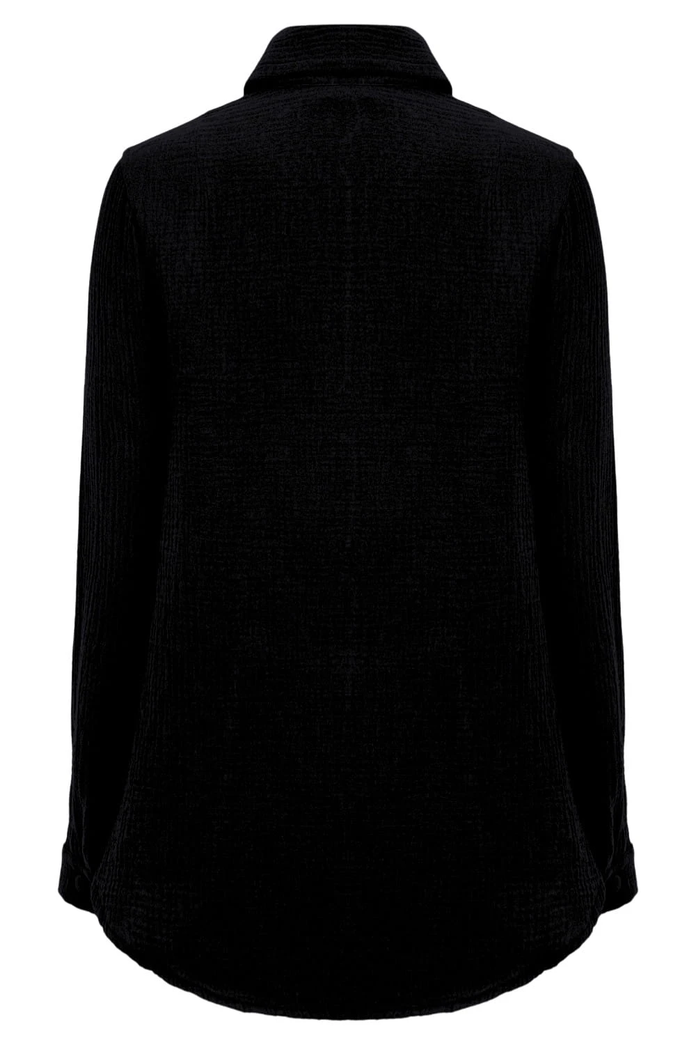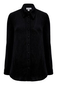 HALLIE - Black - muślinowa koszula oversized z kołnierzykiem i długimi rękawami