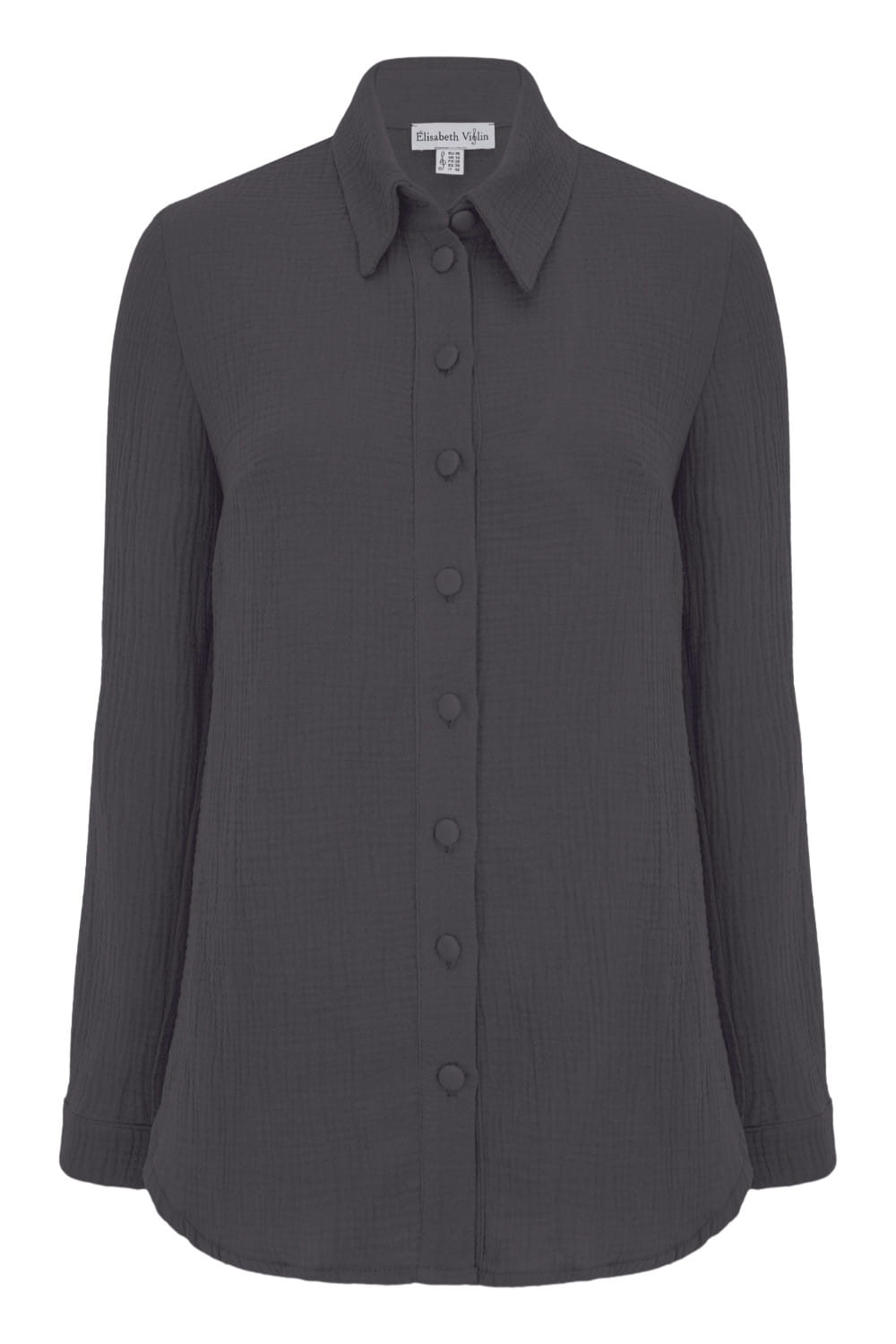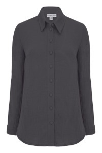 HALLIE - Blackened Pearl - muślinowa koszula oversized z kołnierzykiem i długimi rękawami