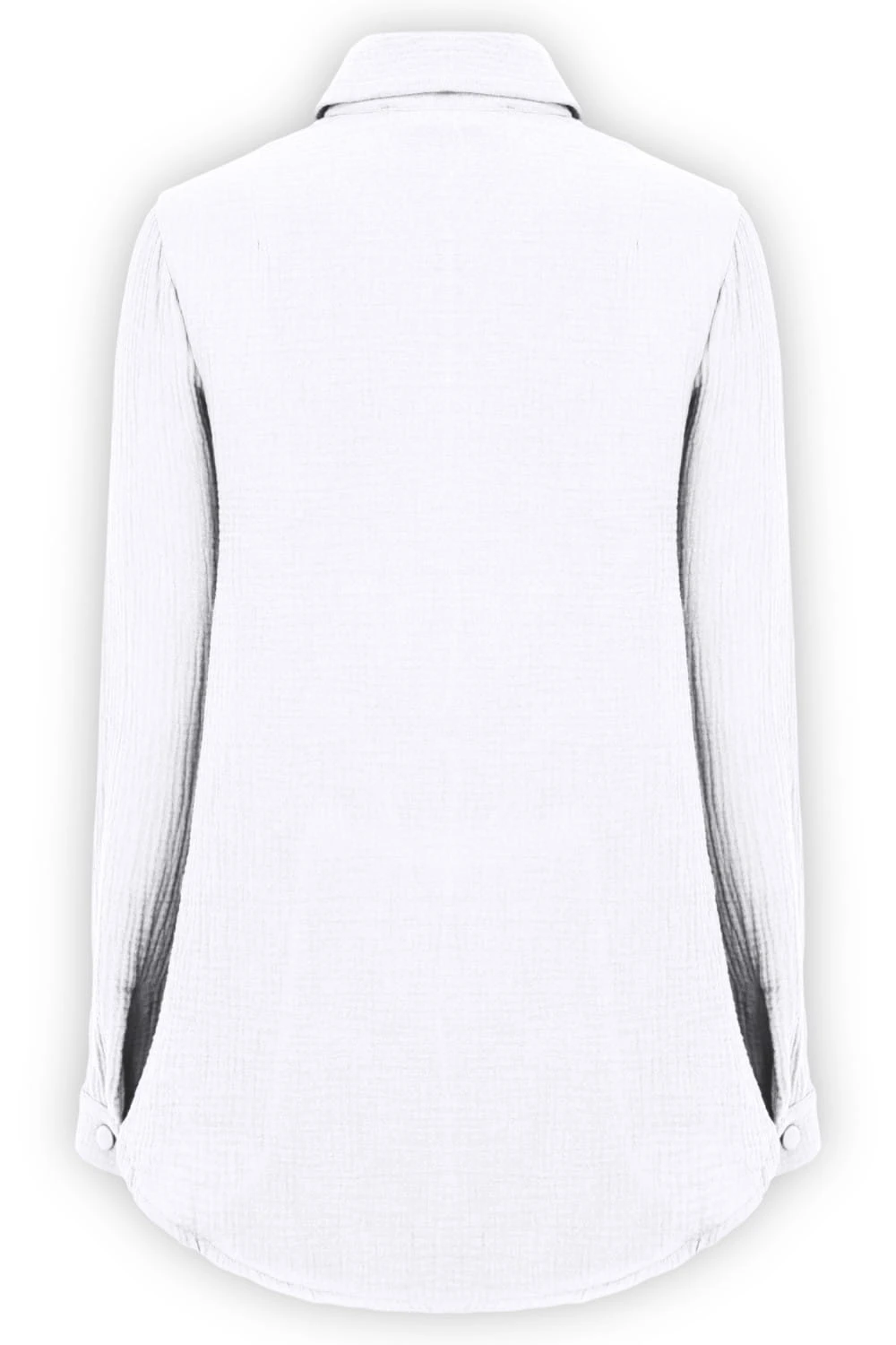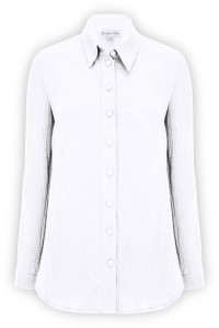 Luźna koszula o kroju oversized wykonana z bawełnianego muślinu. Jeśli chcesz, może mieć kieszenie.