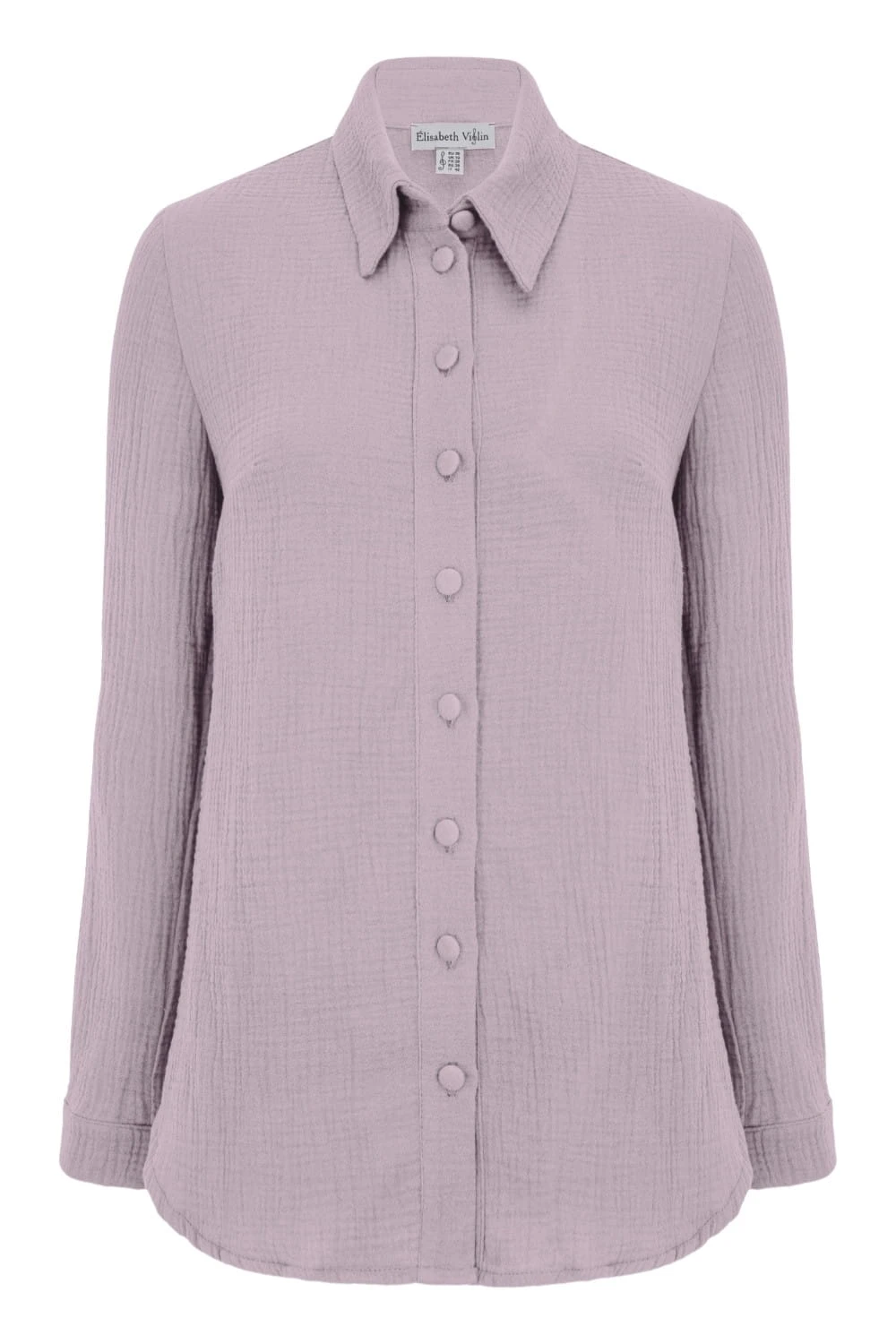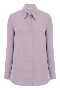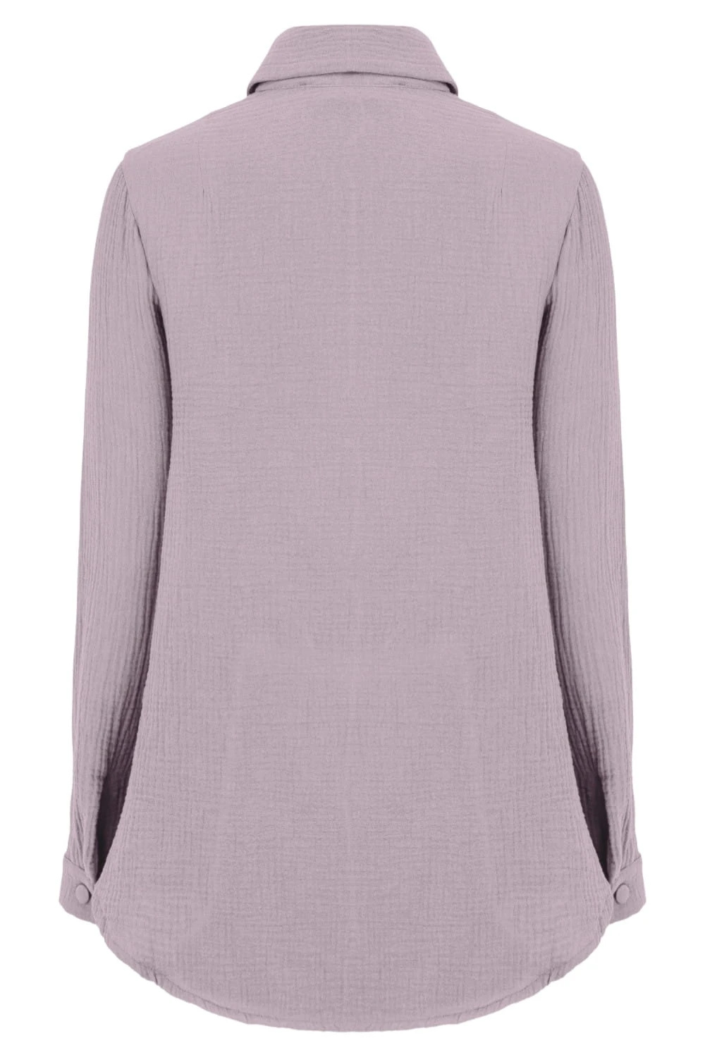 HALLIE - Burnished Lilac - muślinowa koszula oversized z kołnierzykiem i długimi rękawami