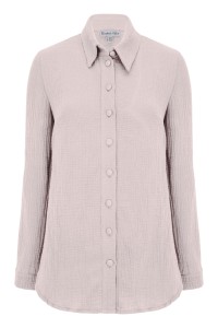 HALLIE - Cement - muślinowa koszula oversized z kołnierzykiem i długimi rękawami