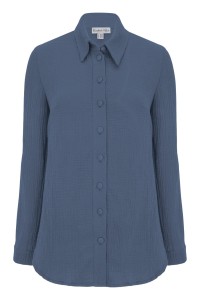 HALLIE - China Blue - muślinowa koszula oversized z kołnierzykiem i długimi rękawami