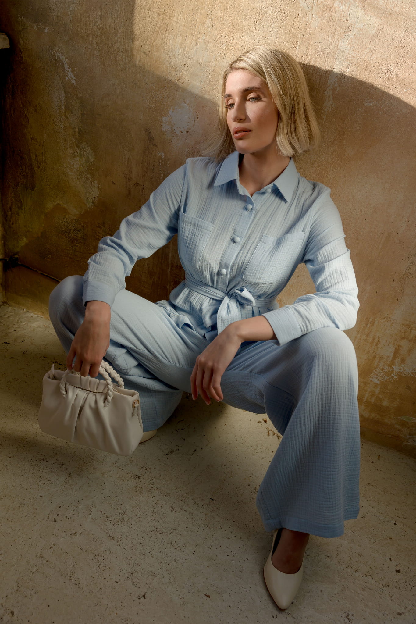 Koszula Hallie została uszyta z wyjątkowo miękkiego, oddychającego muślinu bawełnianego – tkaniny o lekko marszczonej strukturze, która nie tylko wygląda pięknie, ale też zachwyca w dotyku.