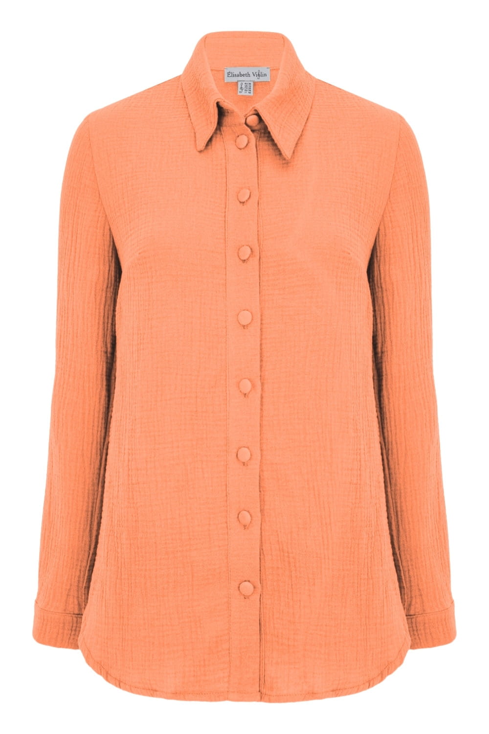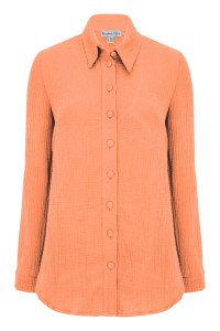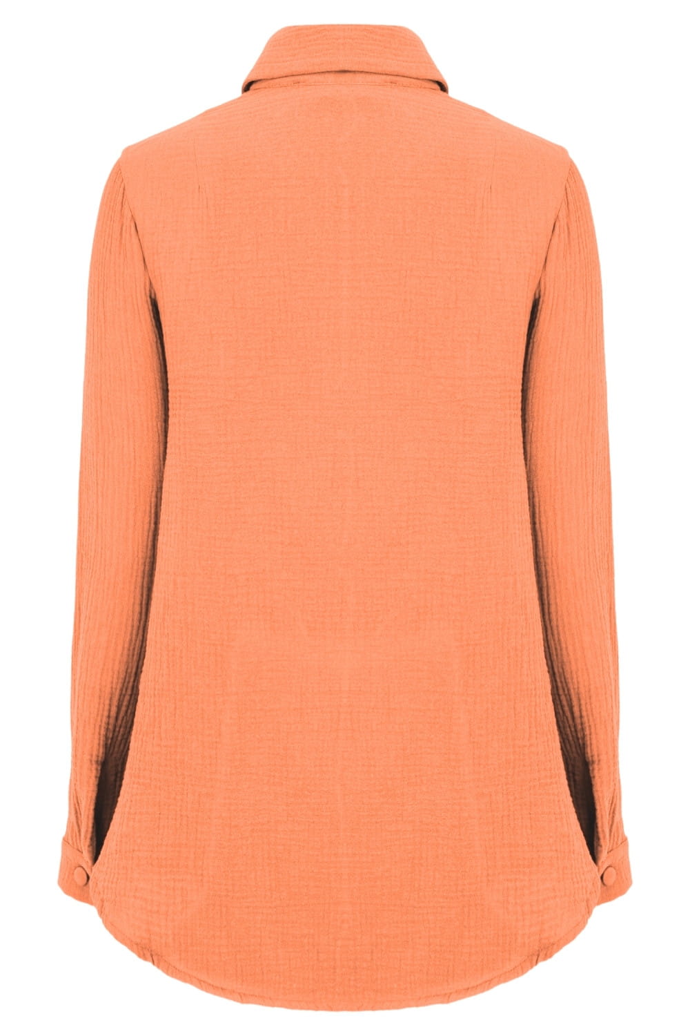 HALLIE - Dusty Orange - muślinowa koszula oversized z kołnierzykiem i długimi rękawami